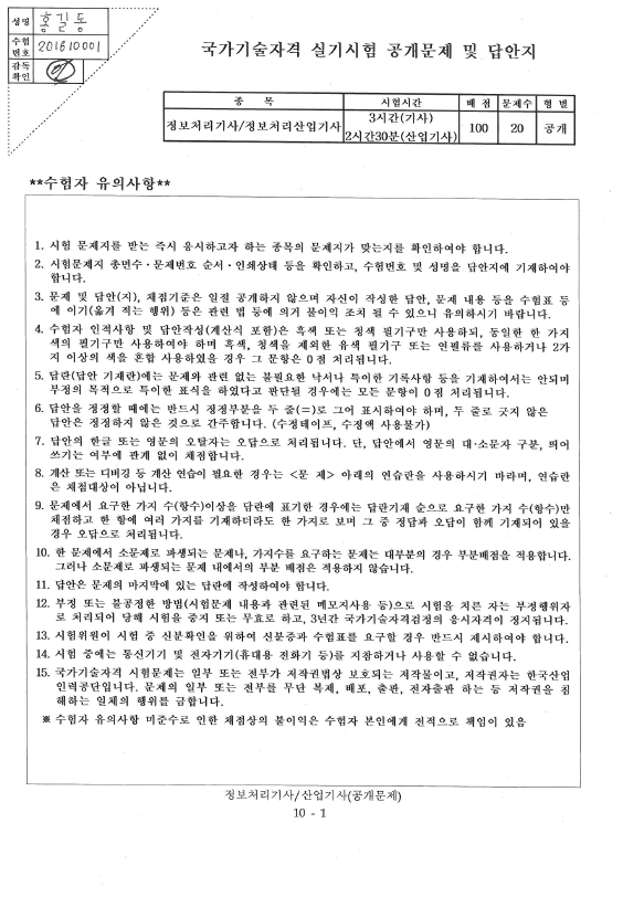 #1. 정보처리기사(산업기사) 공개문제