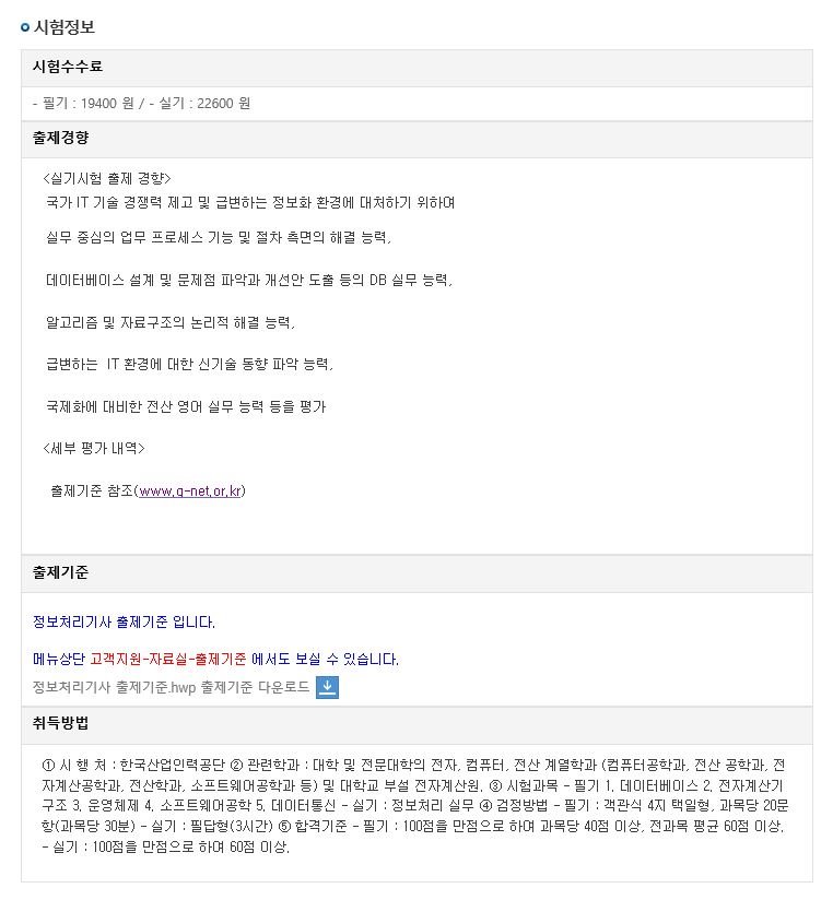 정보처리기사 시험 정보