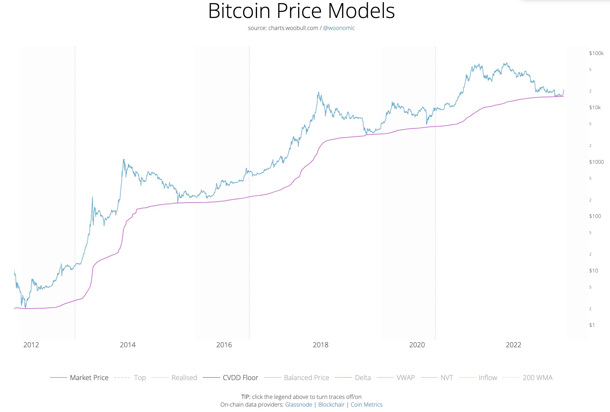 CVDD (coin value days destroyed) free live chart identifying Bitcoin market cycle lows.