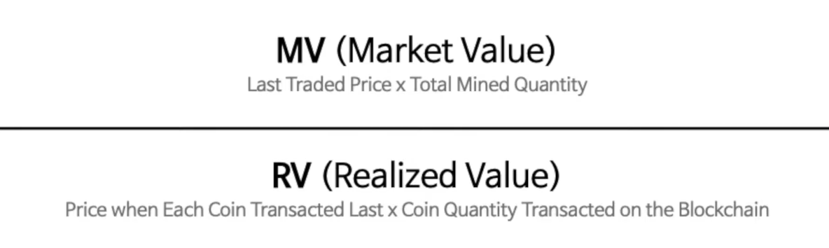 Realized value : 최근 발생한 트랜젝션에서 거래된 최근 가격(시장) * 블록체인상에서 거래되는 양