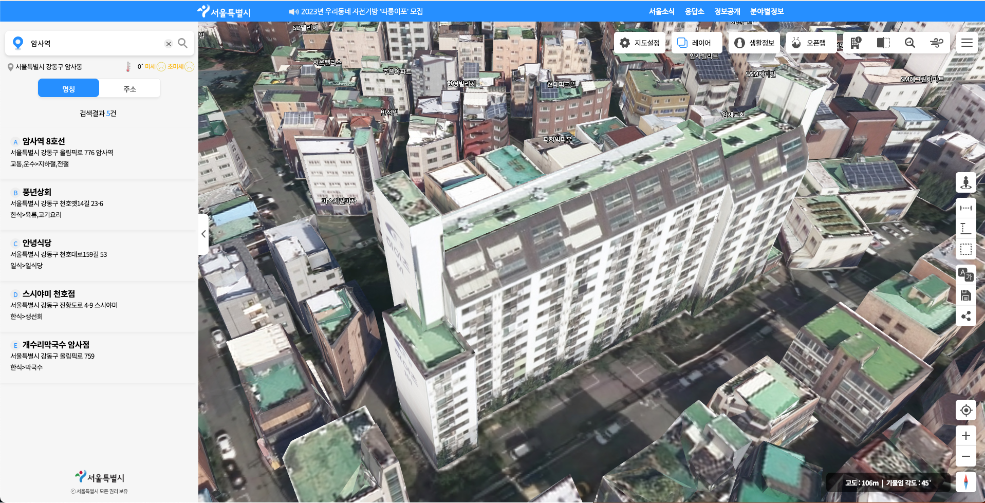 - 대규모 건설로 주변 공공시설(학교 등), 상업시설 존재 가능