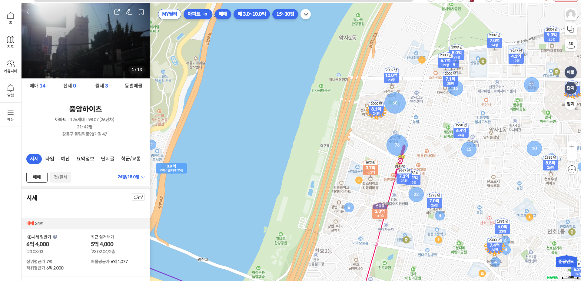 전용면적 18평, 역세권, 암사역 9분 거리, 1998년 건축, 투기 매물