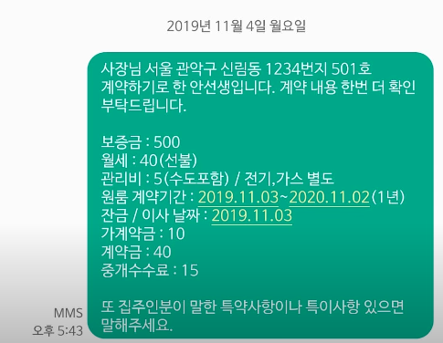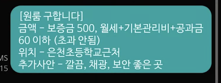 - 여러명의 중개사의 번호를 다 딴다. ( 원룸의 조건을 내가 문자로 보내주겠다.라고 하며 )
