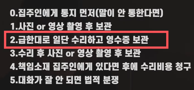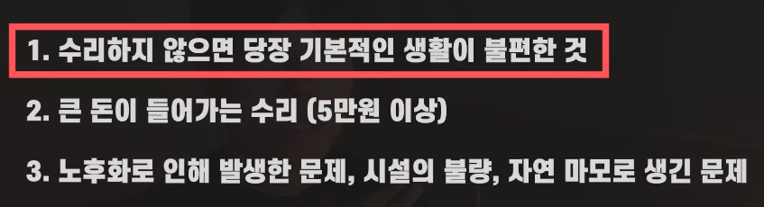 임차인의 책임이 없는 시설물의 고장(노후로 인한 사유)은 임대인이 적극 수리한다.