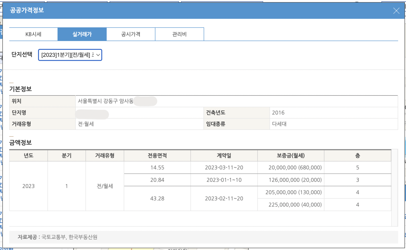 - 전세 실거래가 / 임간 임대주택 등록 정보 / HUG 가입 정보