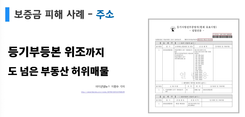 사례) 융자가 많지만, 없는 것처럼 속임 > 전세 보증금 사기