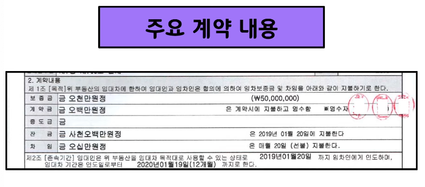 - 보증금 / 계약금 / 중도금 / 잔금 / 월세(차임) / 임대차 계약기간 확인