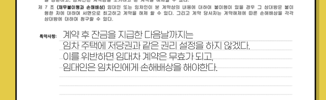 - 특약2- 임대인은 입주(전입신고) 후 3영업일 내에 근저당권설정 등 제한물건 등재가 없는 것으로 한다
