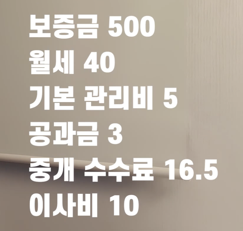- 2.기본 관리비 : 청소, 승강기, 인터넷, 쓰레기 ( 주택 3~5, 오피스텔 5~10 )