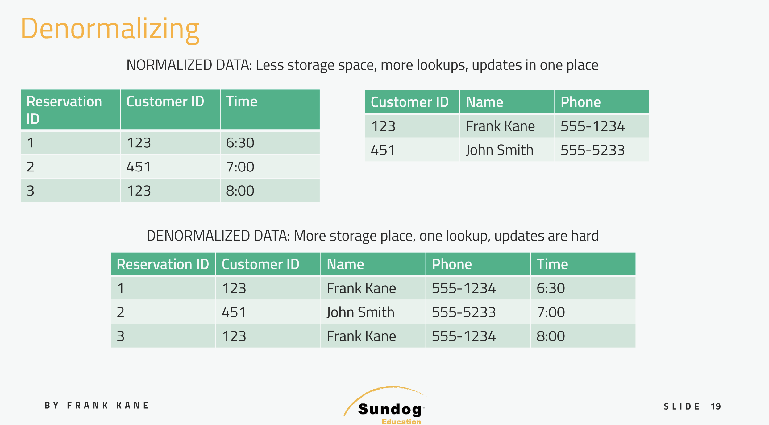 - 대신, 데이터의 업데이트가 어려워 진다.