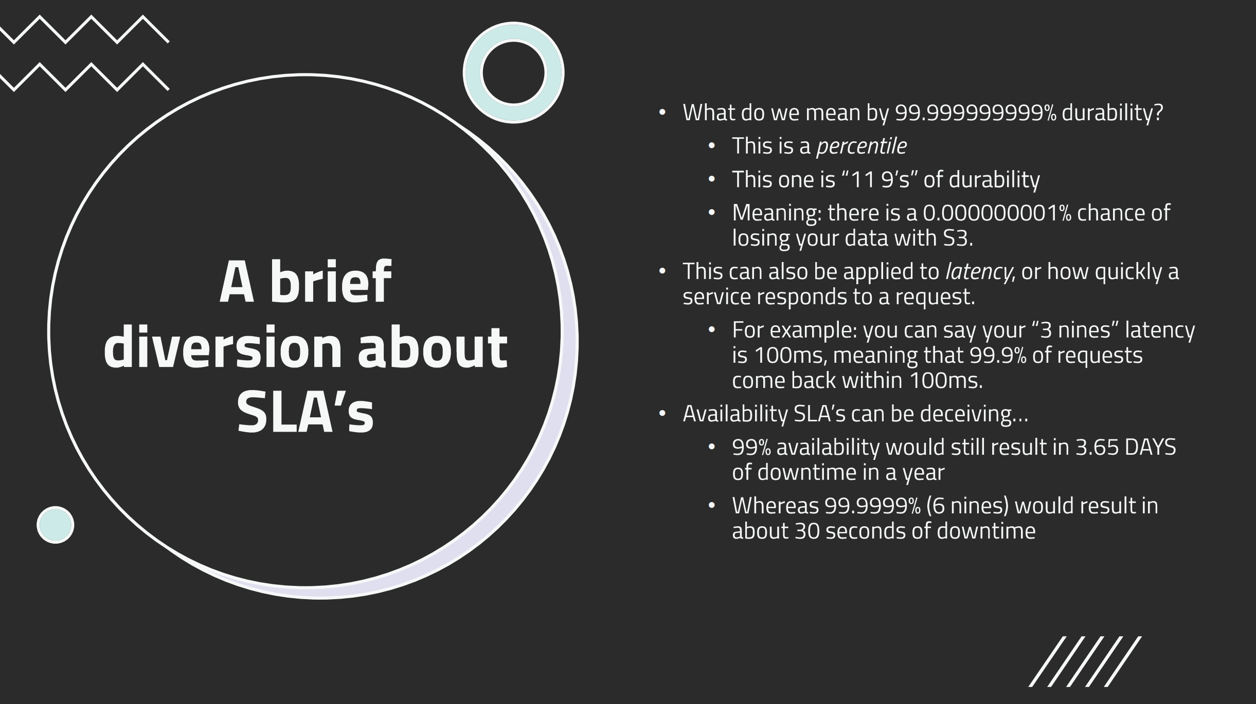 내구성에 대한 약속과 속도에 대한 약속을 SLA에 명세한다.