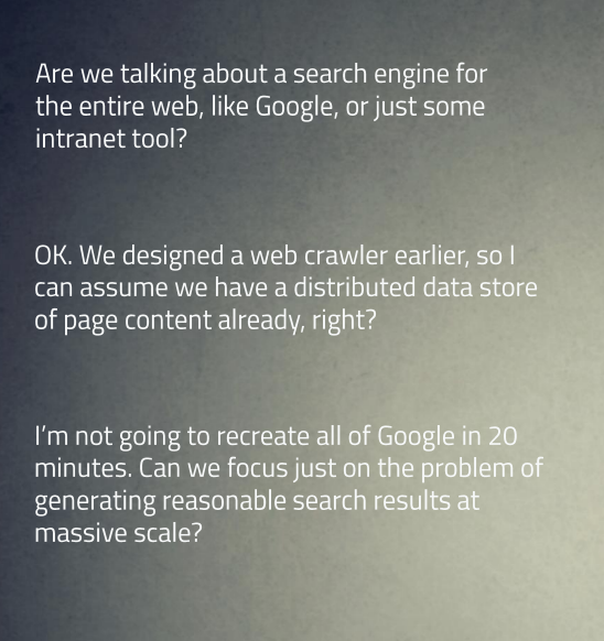 - 합리적인 검색 결과를 생성하는데 초점을 두자 ( 스케일 측면을 고려 )
